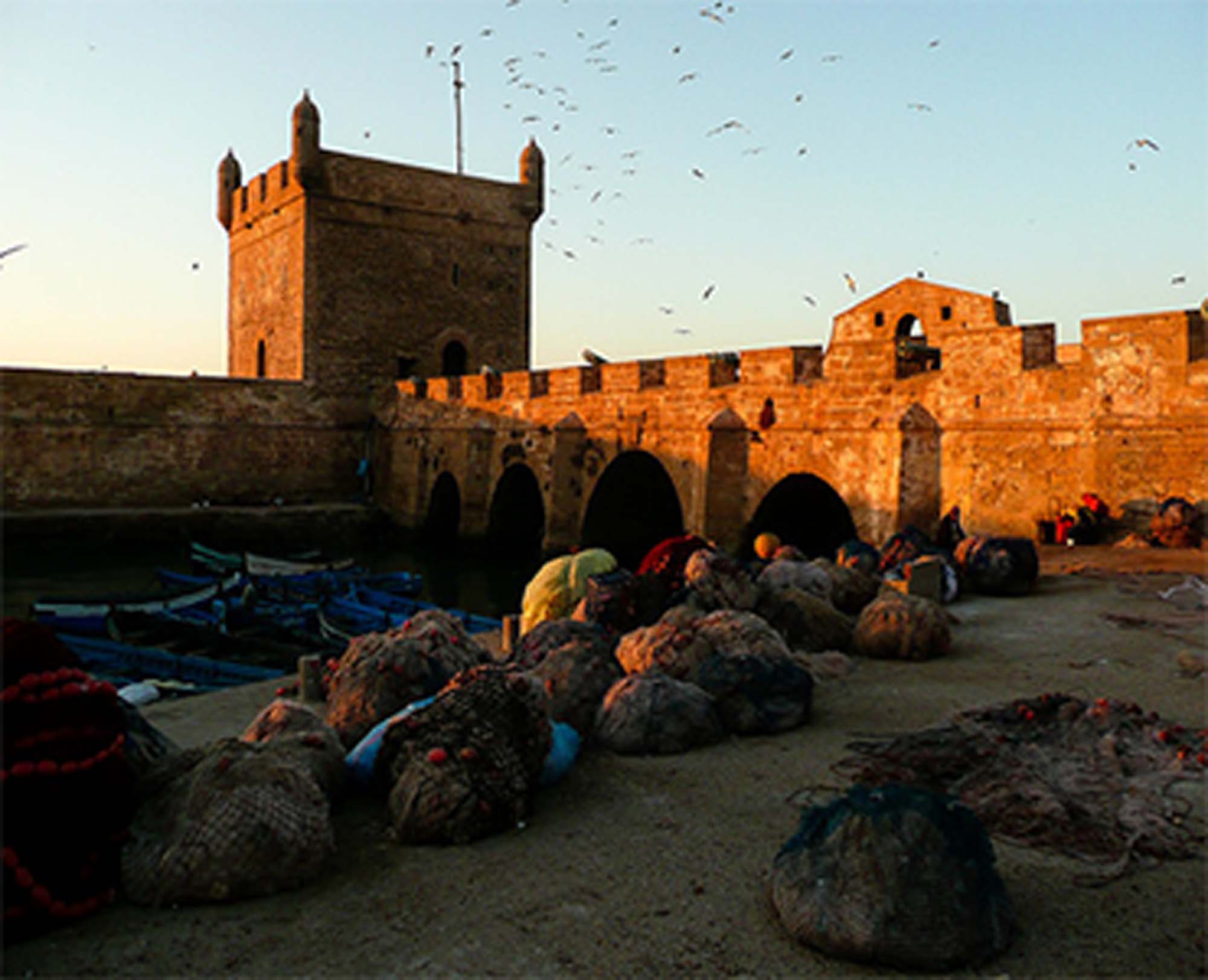 Start your exploration at the harbor, with its bustling fishing port and historic Portuguese fortifications, complete with medieval cannons overlooking the Atlantic Ocean. Then, wander through the UNESCO-listed Medina, a well-preserved old town dating back to the 18th century. Key landmarks include La Scala, a fortress built to defend against sea invasions, and Bab Laalouj, one of Essaouira’s main gates. Don’t miss the Mellah, the historic Jewish quarter, and be sure to browse the city’s art galleries, souvenir shops, and traditional Thuya woodcraft stores, all reflecting the Medina’s charm and rich heritage.