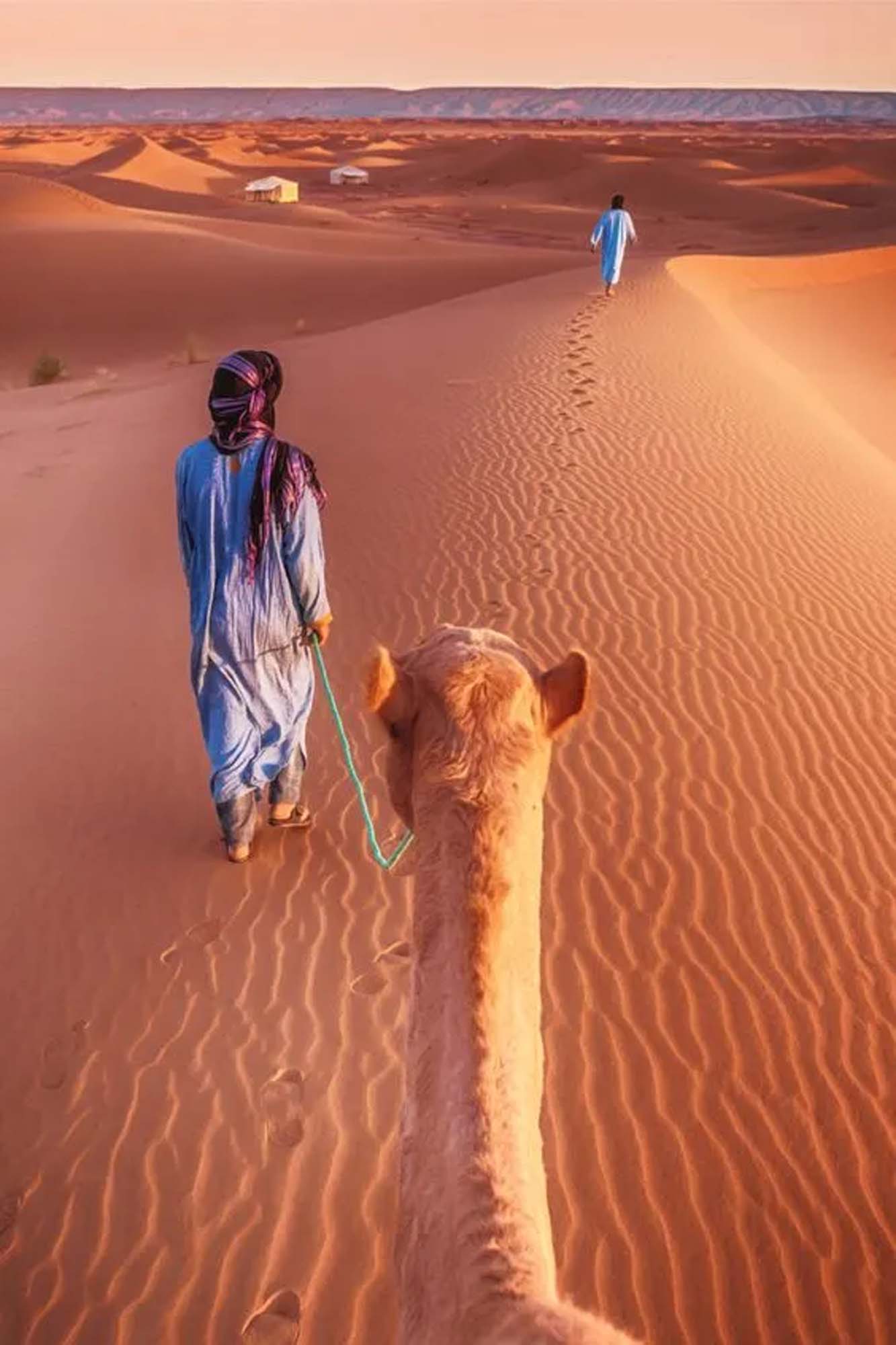 After breakfast, visit the village of Khamlia to meet local Berber nomads and enjoy their hospitality and music. In the afternoon, embark on a camel trek through the Erg Chebbi dunes, where you’ll witness a spectacular sunset and spend the night in a desert camp under the stars, complete with dinner by the campfire and local entertainment.